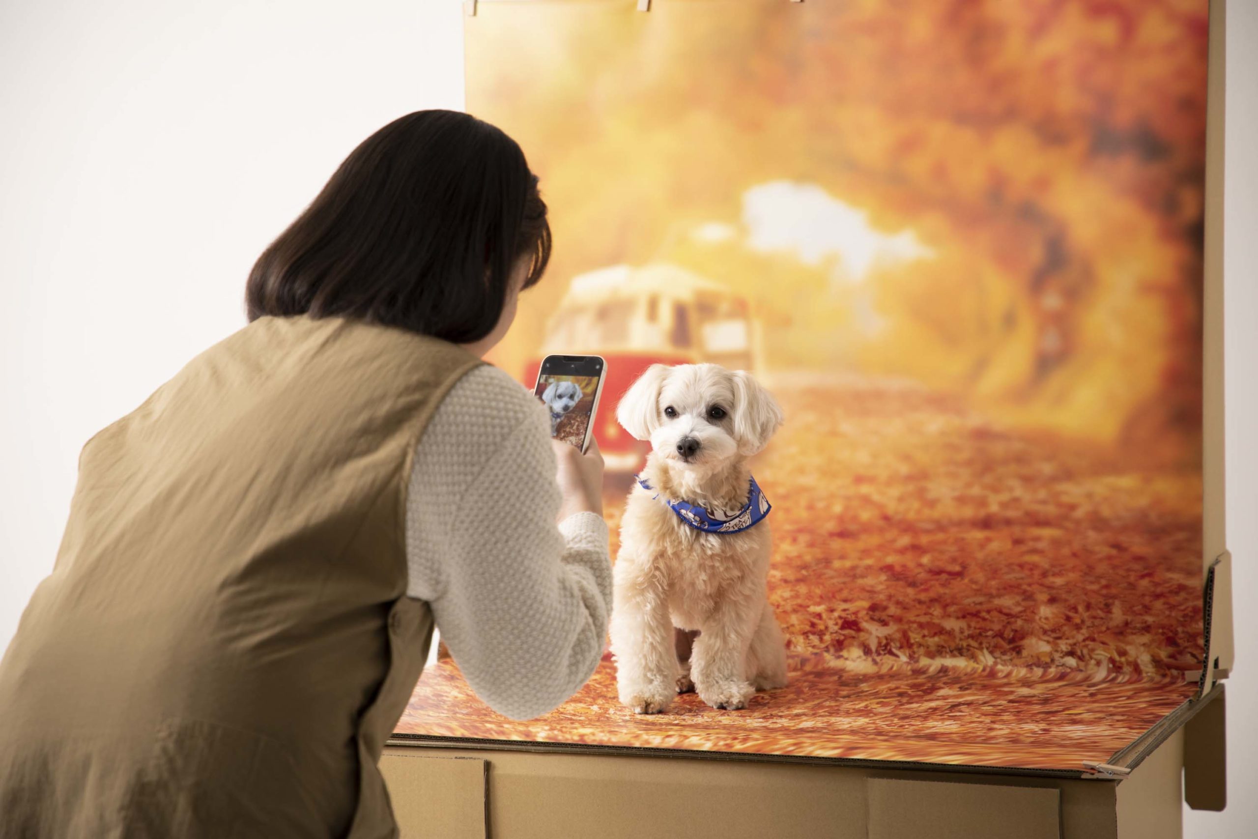 「ワンショットスタジオ」はイヌ、ネコ、ウサギなどのペットが撮影できる簡易な写真撮影スタジオです。有名テーマパークを手掛けるデザイン会社のトリックアート技術を駆使した他にない商材です。誰が撮っても写真映え間違いなしで、瞬時にできる非日常空間に飼い主は夢中になります。ペットショップ、イベント、トリミングサロン、インフルエンサーの方に無限の可能性をご提供します!!